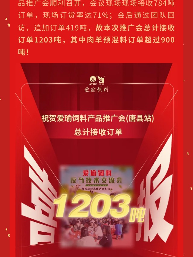 喜報(bào) | 愛(ài)瑜飼料產(chǎn)品推廣會(huì)(唐縣站)總計(jì)接收訂單1203噸!